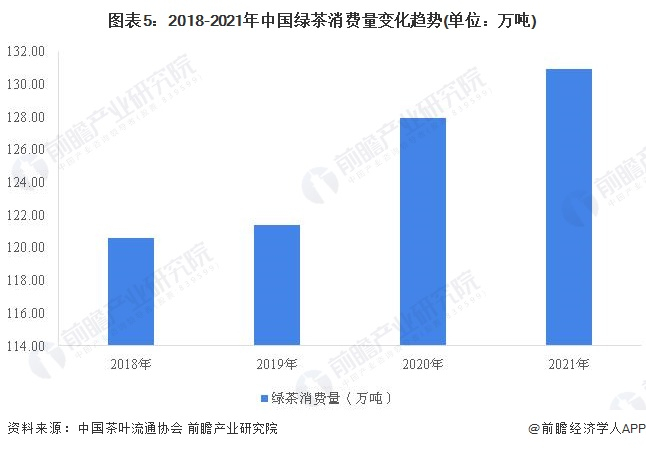 具体到绿茶方面,近年来,我国绿茶消费量呈现平稳上行走势。据中国茶叶流通协会统计数据显示,2018年,我国绿茶消费量为120.59万吨,到2021年,我国绿茶消费量提升至130.92万吨,同比增长2.35%。