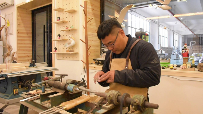 如今,樊森利用木旋技艺,加上现代工艺开发出了家居摆件、益智玩具等品类的上百种产品。一些与国外艺术相结合的创意设计,备受年轻人喜欢。年产值从原来的不到50万增长到2000万以上,产品远销日本、韩国等30多个国家。产业的发展也带动周边2万多人就业。