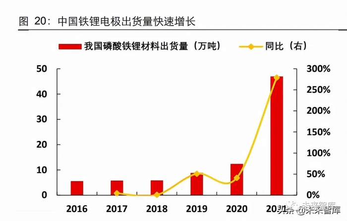 宁德时代 CTP 技术对于铁锂能量密度的提升以及政策端对于三元的补贴的弱化,加强 了铁锂正极的竞争力,铁锂正极的产量在 2021 年迎来爆发,2021 年我国铁锂正极材 料的出货量约达 47 万吨,同比约大幅增长 279%。未来,储能电池需求将快速增长且 铁锂在动力电池领域的渗透将逐渐提升,锂电粘结剂 PVDF 的需求量将受到明显拉动。