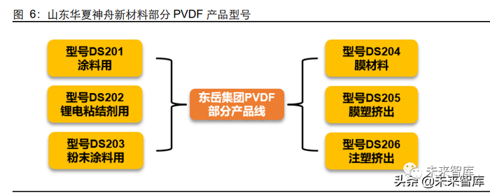 PVDF 生产厂商根据不同的下游应用场景,生产定制化产品。以东岳集团子公司山东华 夏神舟新材料为例,其 PVDF 氟树脂产品有多种型号,分为涂料用、膜用、锂电池用、 模塑用等等,锂电池粘结剂 PVDF 产品价格相对较高。