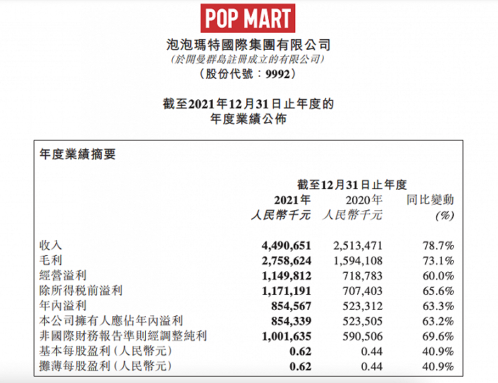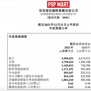 3月28日,泡泡玛特发布了2021年业绩报告。