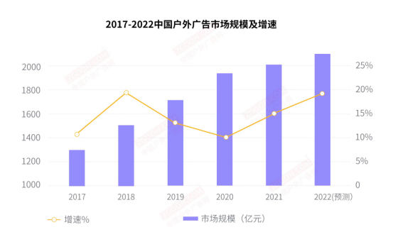 户外广告独特的优势与市场需求的变化,是它增长率持续上涨的原因。