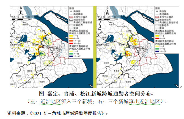 第二,交通联系有待畅通。五个新城的区位条件各有差异,但是总的来看,普遍缺乏独立的对外交通枢纽和高频次的对外交通联系方式,与中心城区、与省际毗邻区域的时间距离都在1小时左右。特别是在铁路联系方面,除了松江新城之外,嘉定新城尽管位于京沪高铁和沪宁城际干线上,但是基本为过境交通;青浦新城、奉贤新城和南汇新城尚没有铁路线路,特别是奉贤新城和南汇新城基本上处于上海交通网络的末梢;作为城际之间特别是都市圈内部之间主要交通方式的市域(郊)铁路,五个新城都还存在空白。同时,新城普遍存在主次干路密度偏低、内部道路体系不够完善的问题,长三角地区往往越过新城直接与中心城区发生联系,容易产生“灯下黑”现象。这些因素导致了五个新城对外联系不畅,尚未充分融入区域交通网络,无论是道路交通、生活服务还是产业生态、信息交流,更多承担着“过境通道”的角色,离智慧中枢的地位还有较大差距。