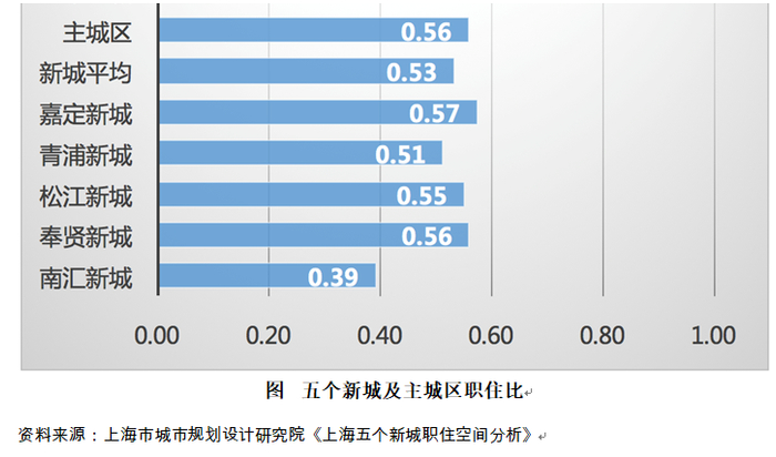 第四,人口集聚有待加速。五个新城都致力于集聚百万规模的常住人口,这是作为大城市的入门级门槛。根据第七次人口普查的数据,五个新城的常住人口规模中,松江新城约81万人、嘉定新城约70万人、青浦新城约40万人、奉贤新城约40万人、南汇新城约37万人,青浦、奉贤和南汇新城距离百万人口还有不少差距。尽管五个新城缩短了“居转户”的年限,但是对于长三角的双创人才吸引力仍显不足。其中的原因,一方面在于新城的产业支撑相对薄弱,缺乏多样化的就业岗位,导致新城对长三角高端人才就业引力不大,难以有效承接中心城区产业和人口的疏解,同时对于本地居民也难以提供充足或合适的就业岗位,导致相当数量的人口跨区域就业;另一方面在于新城的住房供给存在结构性短缺,商品住宅的价格偏高,房价收入比较高,同时多元化、品质化、便利化的人才公寓供应不足,年轻人创新创业的成本仍然较高,由此导致的产城割裂、职住分离的问题也比较突出。