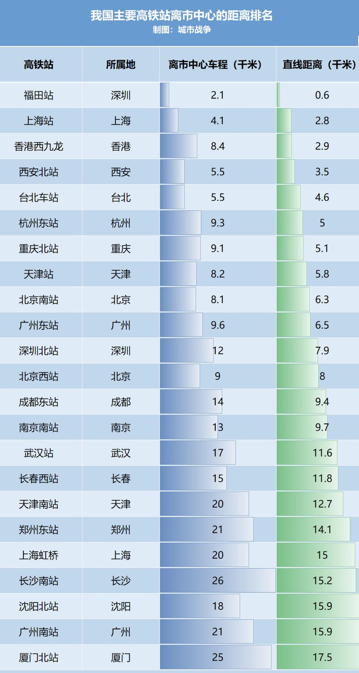 我盘点了一下我国主要高铁站,到市中心的距离: