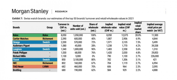 据摩根士丹利发布的2021年钟表行业研究报告,欧米茄品牌的腕表平均售价约为35000元人民币,老大哥劳力士的平均售价则为73000元人民币以上,就连销量也被"搞副业"的珠宝品牌卡地亚超过,五年来首次落到第三位。