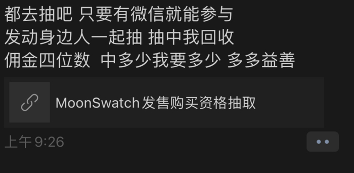 目前,这一系列表款在海外寄售平台的流通价格约为5000至10000元人民币不等,发售当日蹲守在港澳地区斯沃琪门店的黄牛拿到货就可以翻倍出手。在全球股市萎靡的背景下,这种涨幅完全可以说是买到即赚到,也难怪有黄牛放弃倒卖冰墩墩,转而在朋友圈以四位数佣金收购中签资格。