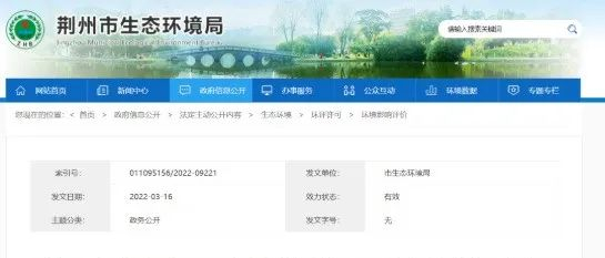 2022年3月16日,荆州市生态环境局发布《华鲁恒升(荆州)有限公司绿色新能源材料项目环境影响评价第一次公示》。