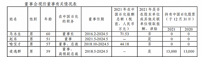 从薪资来看,中石化董事长马永生的薪酬为71.53万。