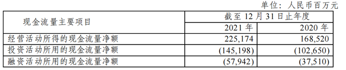从现金流看,2021年中石化经营活动所得现金净额为人民币2252亿元,同比增加人民币 567 亿元。主要归因于除税前利润增加人民币 606 亿元。