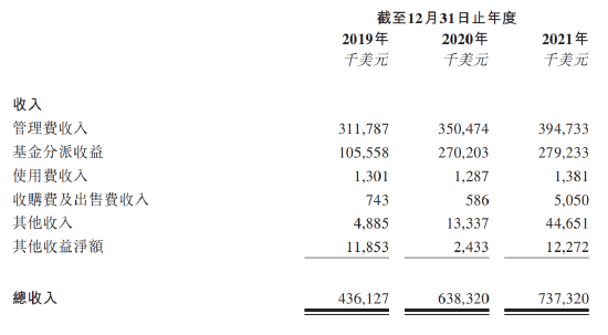 2019-2021年,太盟投资的总收入分别为4.36亿美元、6.38亿美元和7.37亿美元,主要收入来源为管理费收入和基金分配收益。