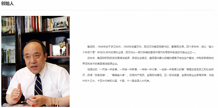 这只电池独角兽的崛起,离不开一个响当当的名字——鲁冠球,他是万向集团的缔造者,一代浙商传奇,坐拥五家上市公司。自始至终,鲁冠球都有一个新能源梦,他曾经直言“我这一代成功不了,我儿子也要继续;儿子成功不了,我孙子继续”。