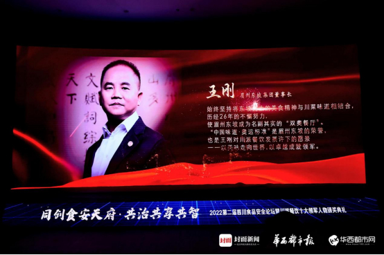 王刚荣获“2021年度川派餐饮十大领军人物”