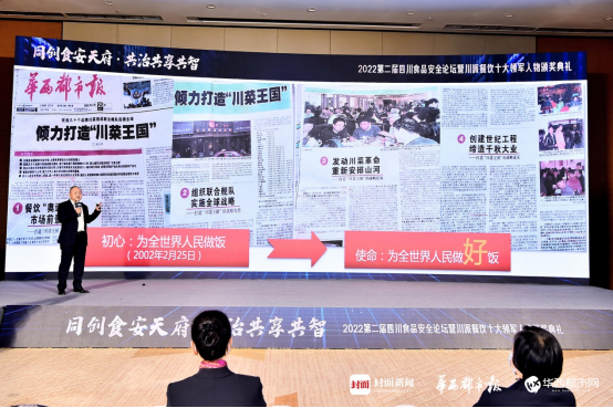 “川菜一端连接世界的嘴巴,一端连接四川的泥巴。中餐发展要打开瓶颈,我认为第一必须标准化、第二产业化、第三国际化。”3月30日下午,“同创食安天府·共治共享共智”2022第二届四川食品安全论坛暨川派餐饮十大领军人物颁奖典礼在成都举行,眉州东坡集团董事长王刚荣获“2021年度川派餐饮十大领军人物”奖项,并在现场进行了主题分享。