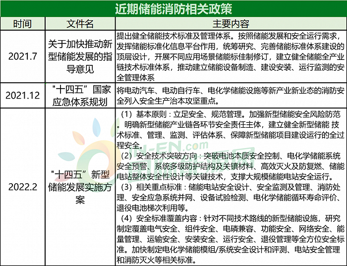 2021年12月30日国家将电化学储能设施消防安全纳入《“十四五”国家应急体系规划》,作为安全生产攻坚重点。