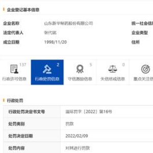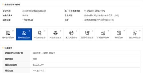 而在今年1月29日,新华制药就因为存在排污口未纳入排污许可证管理的环境违法行为已被淄博市生态环境局罚款超过12万元。