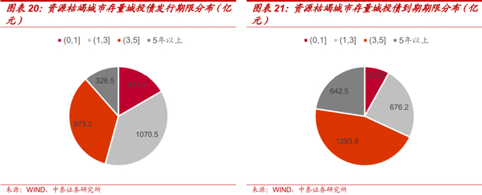 截至2022年3月26日,存量城投债中有474只个券来自21座资源枯竭型城市,存量债券余额2843.1亿元。资源枯竭型城市发行的债券以AA级、中长期为主,短期偿付压力不大,未来1-3年内到期规模较大。
