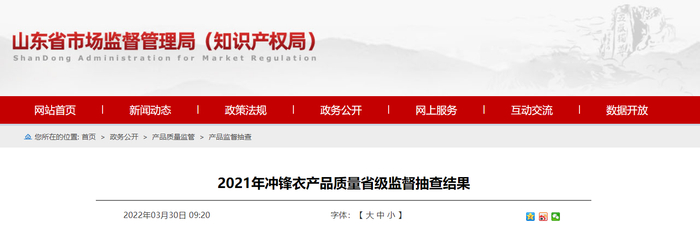 山东省市场监督管理局抽查:7批次冲锋衣产品不符合相关标准的要求