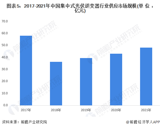 全国集中式光伏逆变器行业供应市场规模不超过50亿元