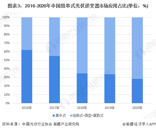 根据中国光伏行业协会资料,2016-2020年全国集中式光伏逆变器应用占比从62%下降至30%以下,未来,随着组串式逆变器在大型地面电站的应用渗透,集中式光伏逆变器的市场空间将被进一步压缩。