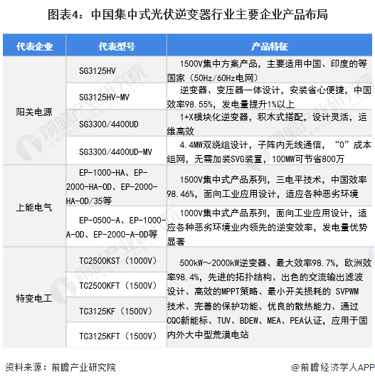 中国光伏逆变器主要生产厂商有华为(专注于组串式逆变器)、阳光电源、上能电气、锦浪科技等厂商,从中国主流光伏逆变器厂商产品布局来看,主要集中在组串式光伏逆变器与微型光伏逆变器,特别是新进入企业大都专注于组串式光伏逆变器,而布局集中式光伏逆变器的企业相对较少。