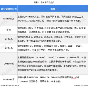 按照合金系列分类,齿轮钢主要可分为Cr-Mn-Ti系、Cr系、Cr-Mn系、Cr-Mo系、Cr-Mn-B系以及Cr-Ni-Mo系。