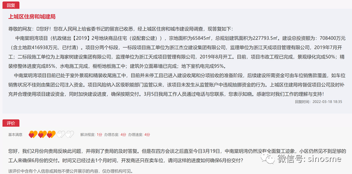 上城住建在3月18日的回复中仍然认为中南棠?湾是能够在6月30日完成交付的。