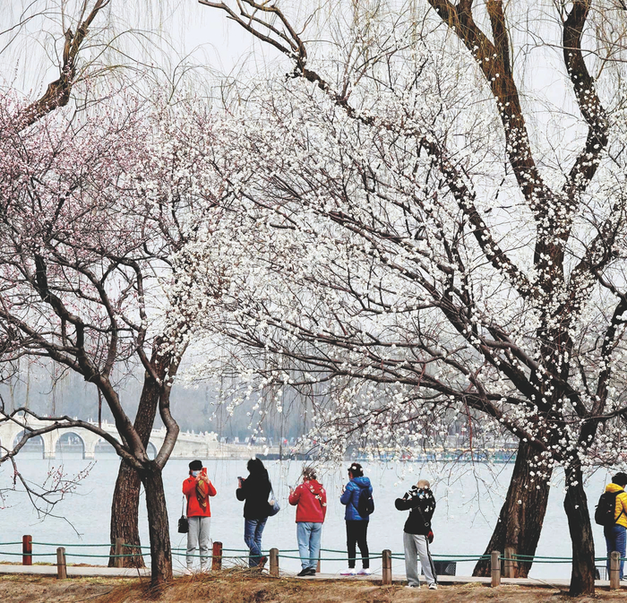北京颐和园西堤,山桃花、玉兰花、迎春花竞相绽放,桃红柳绿的西堤与亭台楼阁构成一幅美丽的春日画卷。本报记者 齐波 摄