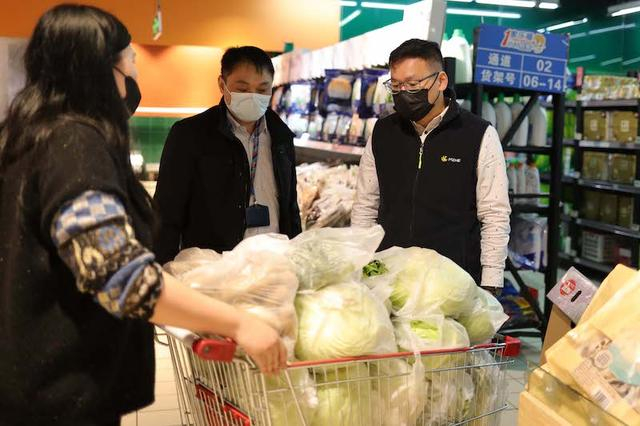 “蔬菜和肉类是大家备货的重点。我们平时的果蔬供应是每天1车,现在是每天3~4车,凌晨就开始备货,早上来一批,晚上再来2车,总体的生鲜货品供给翻了3~4倍。”季林枫边和记者聊着,边开始新一轮补货。