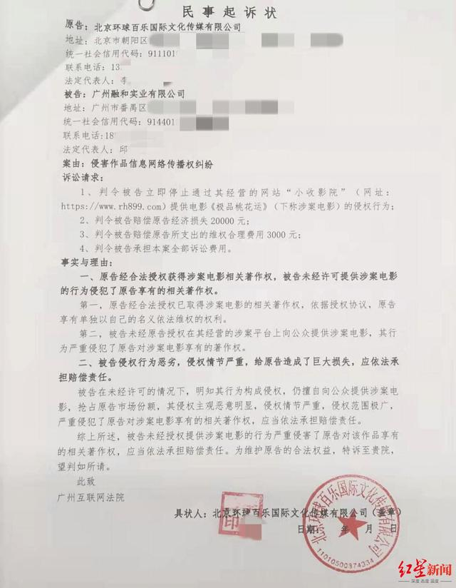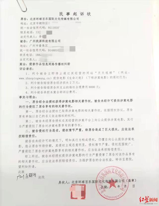 代理北京天保之升公司知识产权案的律师向红星新闻介绍,影视公司的影视版权较多,“很多情况是影视公司出钱买下版权后又被侵权,因此如果权利人想做维权的话,一般是进行全国性的维权,这种行为是正当的,所以法院才会受理。如果被告提交证据,证明网站确实不是他们运营的话,法院会公正判决的。”