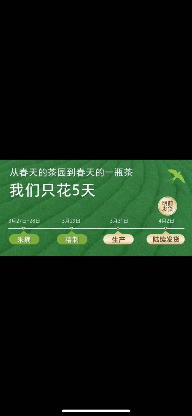 3月31日,赶在清明时节之前,东方树叶推出品牌成立十一年来首个春季限定产品——龙井新茶。与其他口味不同,龙井茶的时间特性与制茶难度,让东方树叶只能与时间赛跑,从茶园采茶到完成灌装,新上线的龙井新品只用了5天。这个时间,让东方树叶再次刷新了中国当前即饮茶的生产标准。