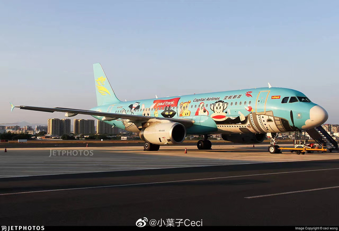 首都航空Paul Frank大嘴猴主题彩绘机,受访者供图