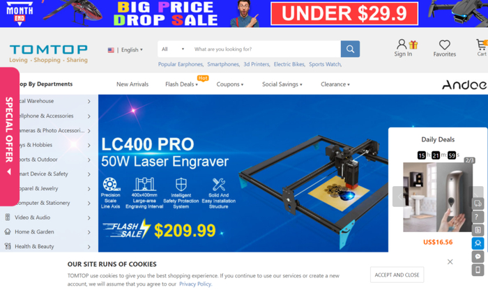 通拓不仅是亚马逊大卖家,同时还重点布局了独立站,其主站TomTop一直是重点培养的对象。