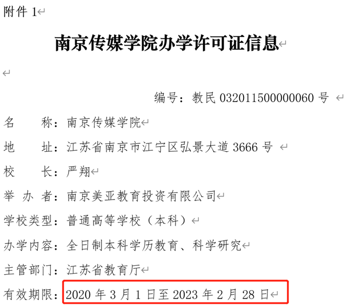 而在高等教育方面,2020年3月,教育部发函,同意中国传媒大学南广学院转设为南京传媒学院,同时撤销中国传媒大学南广学院的建制。同时确定南京传媒学院为独立设置的本科层次民办普通高等学校,定位于应用型高等学校,并要求中国传媒大学与南京美亚教育投资有限公司应逐项落实双方签订的《终止合作办学协议》条款。