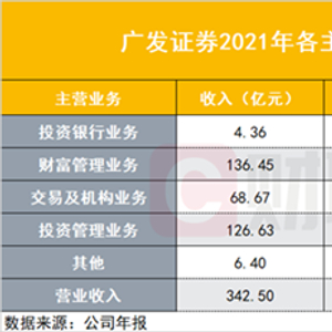 凭借投资能力作为"压舱石"及卖方影响力,2021年广发证券交易及机构业务“战绩”不俗,营收同比大增34.74%至68.67亿元,在四大主营业务中增速最快。其中权益及衍生品交易业务、固定收益销售及交易业务等取得较好收益,另类投资业务及资产托管业务均有新突破。