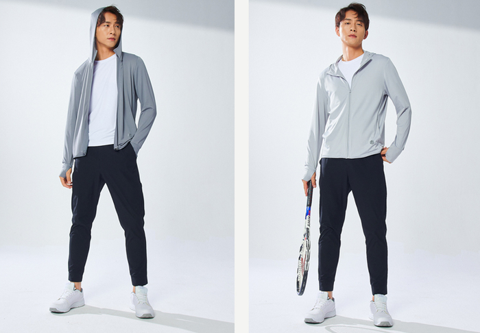 采用千元级户外运动品牌偏爱的速干面料,轻薄之余自带透气性质,触感滑滑凉凉。