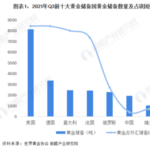 黄金是一种特殊的贵金属,具有商品和金融双重属性。尽管布雷顿森林体系崩溃后,金本位制正式退出历史舞台,但是由于黄金的价值属性和其稀缺性仍决定了其重要的地位,全球各国都在争相持有黄金。从各国黄金储备来看,根据世界黄金协会数据显示,截至2021年前三季度,美国是全球最大的黄金储备国,其黄金储备数量达8133吨以上,占其外汇储备的65.55%,其次为德国、意大利和法国。我国黄金储备则为1948.31吨,占我国外汇储备的3.24%,远低于前几大国家的水平。