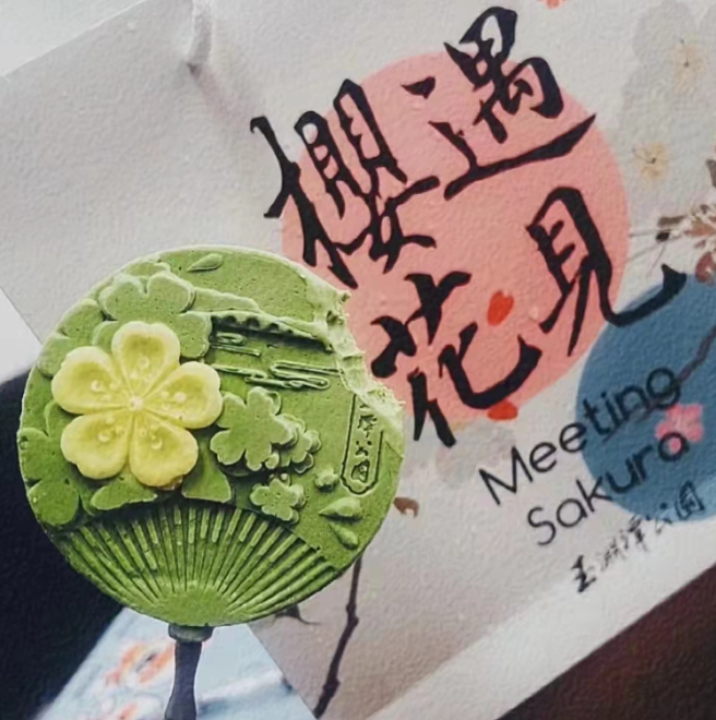 国风款樱花冰淇淋采用全国首创双色叠层、双面立体工艺,让颜值与口味双重在线。冰淇淋摇身一变为中国传统团扇造型,扇柄采用环保麦秸制作,使冰淇淋整体外形更接近团扇造型。画面设计更是把代表公园文化的花、塔、桥等元素集于一身,一口一口将玉渊潭的景色吃进嘴里,融进心间。