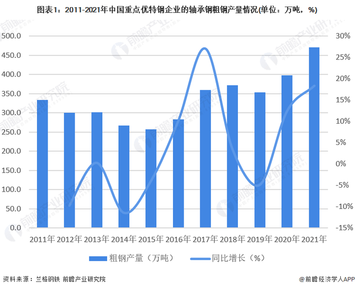 2022年中国轴承钢行业市场现状及发展趋势分析 主要企业轴承钢粗钢产量超470万吨【组图】