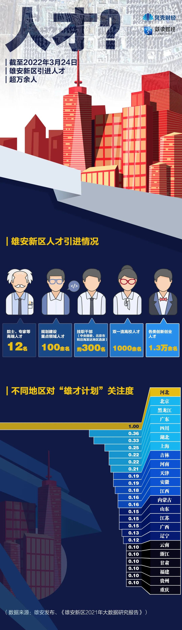 新京报贝壳财经记者用数据为你解密 “未来之城”雄安新区五年建设之路。未来,它将如何在京津冀协同中发挥重要作用?又有哪些省份最关注“雄才计划”?