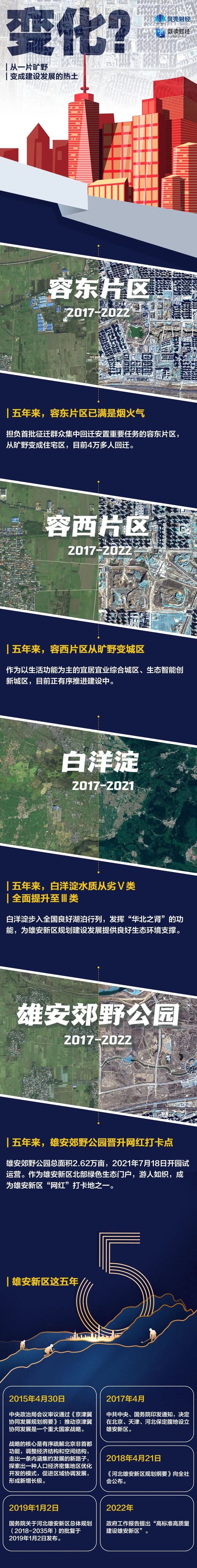 中国雄安官网、自然资源雄安新区卫星应用技术中心的“卫星视角”显示,五年来雄安新区如何从一片旷野变成建设发展的热土。