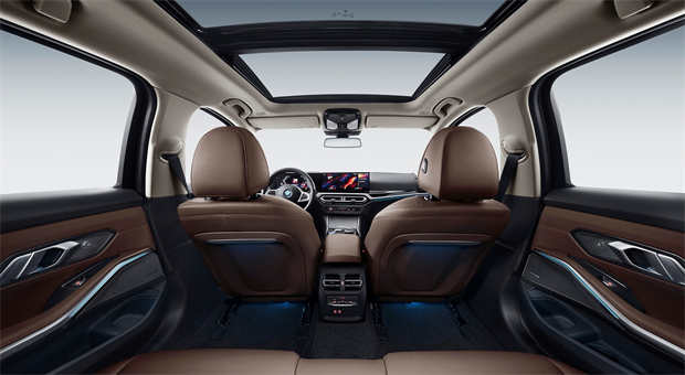 “功能岛”设计理念的焕新应用使物理按键大幅减少,传统挡把换装为精致小巧的拨杆,成功营造更加简洁大气驾驶舱氛围。新车还是华晨宝马首款采用全新BMW iDrive操作系统8.0、一体式悬浮曲面屏的车型,该屏幕集成了14.9英寸的触控显示屏和12.3英寸的数字仪表盘,并面向驾驶员微微倾斜,不仅为用户带来了极佳的数字化感官体验,还生动演绎了以驾驶员为导向的内饰设计理念。