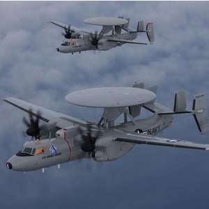 E-2鹰眼系列是美国格鲁曼公司研发的空中预警机,机背上有一个 直径7米的雷达罩,正是该机最重要的设备。E-2D高级鹰眼预警机装备的是AN/APY-9有源相控阵雷达,因此雷达罩不必旋转,这是与其他鹰眼预警机最大的不同。