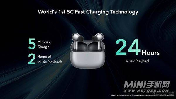 作为全球首发支持5C快充技术的TWS耳机,荣耀Earbuds 3 Pro只需充电5分钟,即可实现2小时音乐播放,结合耳机充电盒充电,能实现24小时的音乐播放续航。
