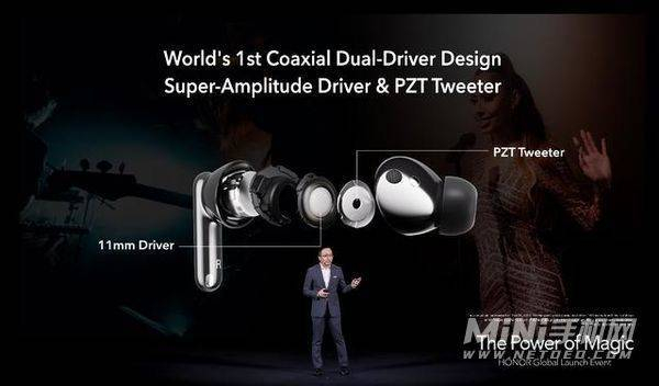 荣耀Earbuds 3 Pro是全球首款采用超大振幅动圈与陶瓷高音单元的同轴双单元TWS耳机。