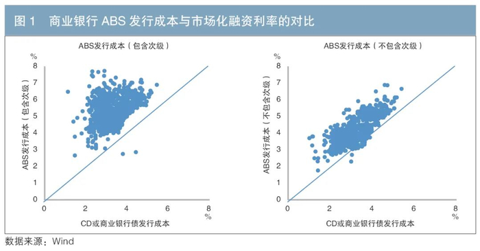 资产证券化在资产负债配置、资本充足率管理、风险管理、收入管理和不良资产处置中都能起到积极作用,王良和薛斐(2021)对此进行了总结。从资产端来看,发行ABS可以盘活银行信贷规模。通常商业银行会对信贷业务的总量和结构进行规划,并要满足监管要求。例如,在商业银行房地产贷款集中度管理政策实施后,个人住房贷款规模成为集中度超限银行的宝贵资源。另外,一些区域性银行本地经济活跃度高,消费贷款、小微贷款业务发展迅速,但贷款增长受到资本、风险管理和监管等因素的多重约束。通过发行ABS,实现贷款出表,可以盘活贷款规模,支持资产业务发展。从负债端来看,发行ABS融资是银行多元化资金来源之一,也有利于做大客户管理资产(AUM)。从资本端来看,在ABS发行过程中,通过出售次级资产可实现资本出表,尤其是发行以不良贷款作为底层资产的ABS,可以通过市场化方式实现不良资产处置,化解经营风险。从收入端来看,发行ABS可以调整收入结构,改善盈利水平。在发行ABS的过程中,发行方通常也是贷款服务银行,其中底层资产收益率高于ABS约定收益率的,多出来的收益大部分可以通过事先约定的贷款服务费条款由发行银行收回,从而使净利息收入转化为非息收入。另外,如果宏观经济金融形势正处于“宽货币、紧信用”时期,贷款利率上行,市场利率下行,此时可将利率较低的贷款作为底层资产发行ABS,所获得的资金可用于发放更高利率的新贷款,以增加营业收入,提升净利息收益率(NIM)。从“投商行一体化”经营角度看,发行ABS可起到跨条线联动作用。ABS可与债券承销、资产托管、私人银行、财富管理、资产管理、同业金融业务联动,打通为客户服务的资产和负债两端,形成“飞轮效应”。