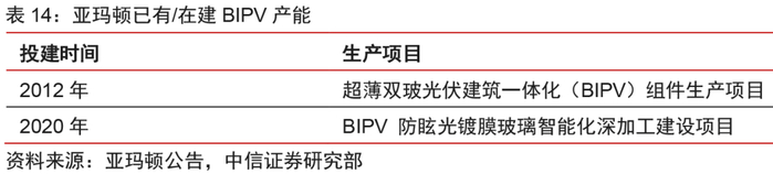 亚玛顿:镀膜、超薄技术行业领先,超前布局BIPV。亚玛顿是国内最早进入AR镀膜玻璃领域的光伏玻璃深加工厂商,在超薄物理钢化玻璃领域也走在行业前列。公司深加工毛利率一度因原片产能限制受到挤压,随着母公司原片产能相继落地,正逐步形成原片+深加工一体化能力,盈利能力有望回升。公司在BIPV双玻组件领域的布局始于2011 年,近年来依托技术优势进一步拓展了BIPV光伏玻璃市场,目前已经进入量产阶段。