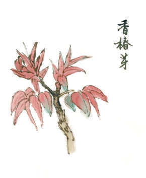 每到春天,正院的香椿树就从枝头发出红色的嫩芽儿,这香椿芽儿,可是开春的第一口新鲜蔬菜。树高够不着,我就找来长长的竹竿,在竿头捆上一把小刀,勾住它的根部猛地往下一拉,就割下一绺嫩芽儿。弟弟妹妹们在下面捡,凑成半小盆端到厨房。妈妈把香椿芽洗干净,锅中放水,烧开后倒入香椿先焯一下。一着热,水就变绿了。用漏勺捞上来过凉水,在案板上码放整齐,先把硬硬的根部切掉,再把香椿切成小段,放入盘中,加入两块雪白的嫩豆腐,滴上香油撒上盐一拌,真如雪中绿翡翠,颜色好,喷鼻香。香椿拌豆腐是一道春天必吃的凉菜,吃到它,就吃到了春天的味道。