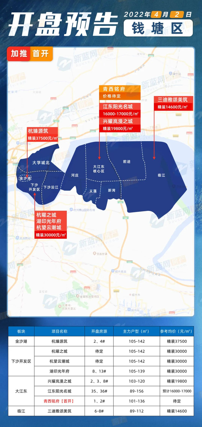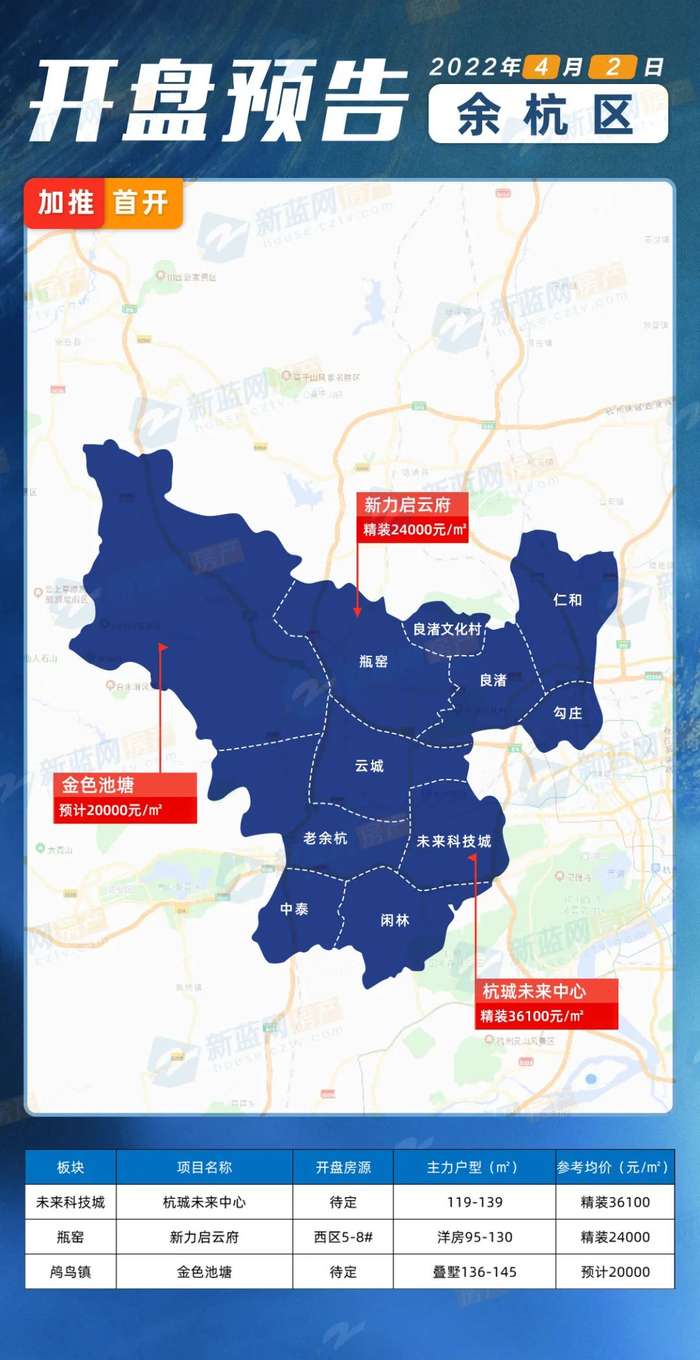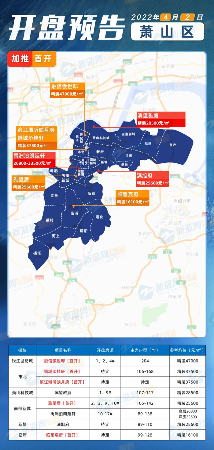 据不完全统计,4月杭州预计有40余盘推新,从高端改善盘海潮望月城、傲世邸,到单价低至12000元/㎡的刚需盘,各个预算区间都有得挑。