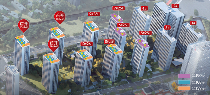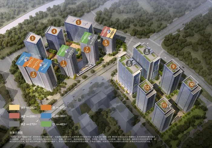 住宅规划:6幢13-24F高层,7幢商业,2幢办公
